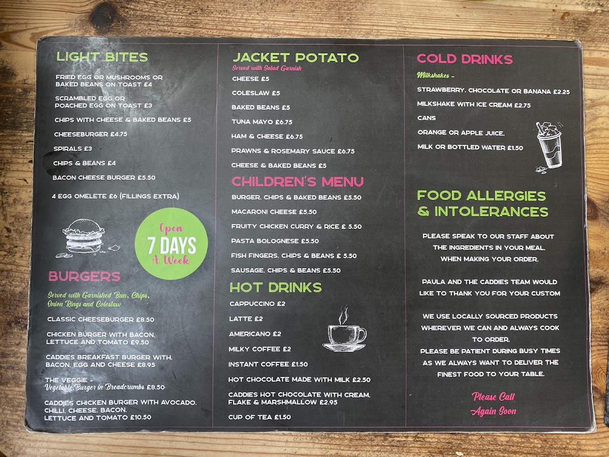 What truly sets Caddies Cafe apart is its emphasis on quality ingredients and attention to detail. The menu is thoughtfully curated, with items that are both comforting and innovative. The freshly brewed coffee and homemade cakes are perfect accompaniments to any meal, with the carrot cake being a particularly popular favorite. The cafe’s warm and friendly service adds to the overall experience, making it a place where you feel at home.